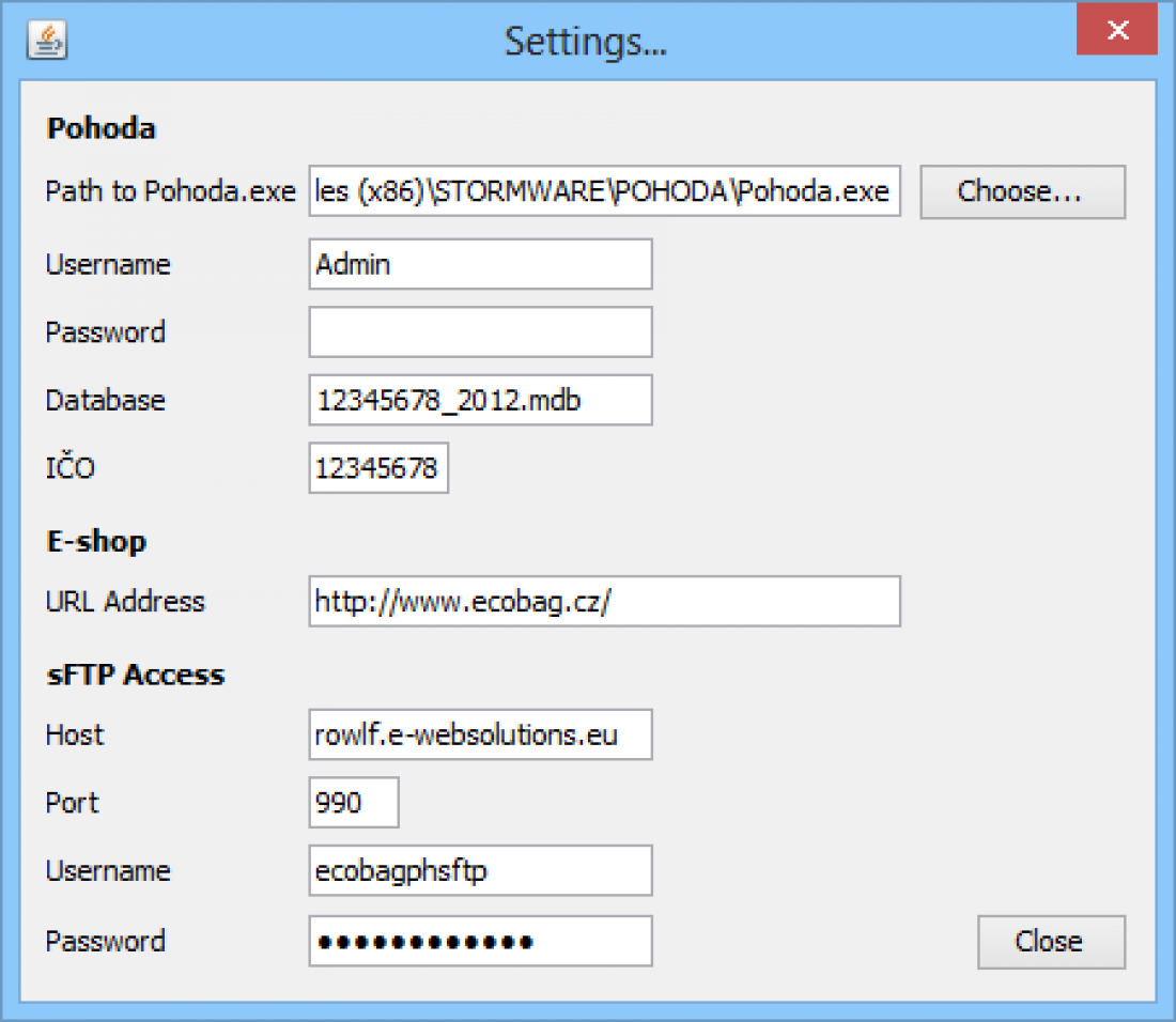Pohoda2Aitomshop je nutné nastavit podle dat z Pohody. Pokud uživatele nepoužívají, zřejmě uživatel bude Admin a heslo prázdné.