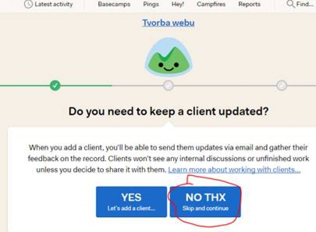 5) Klienty nepřidáváte – kliknete na tlačítko "No Thanks"