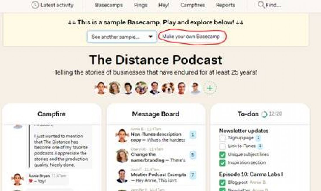3) Prokliňete se na Get Started, poté kliknete na Make your own basecamp