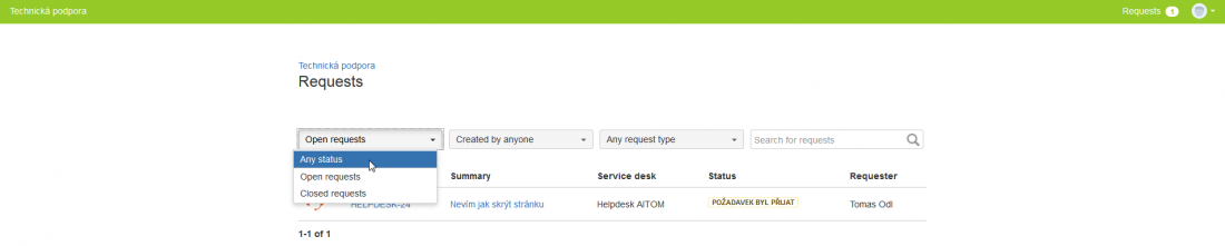 10. Vyberte příslušný požadavek a rozklikněte jej.