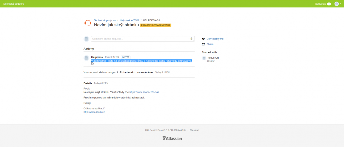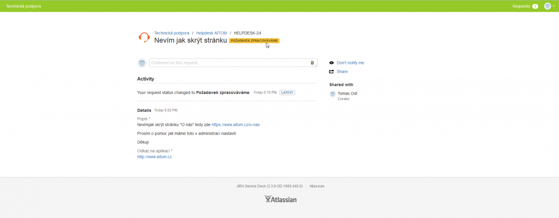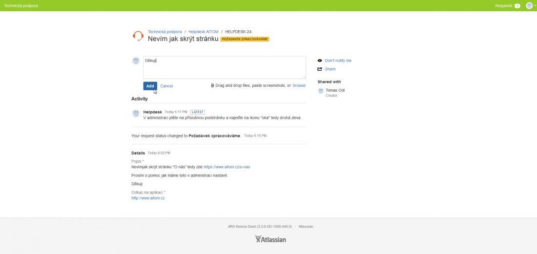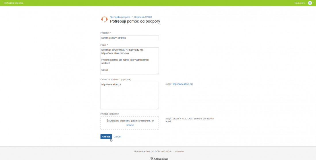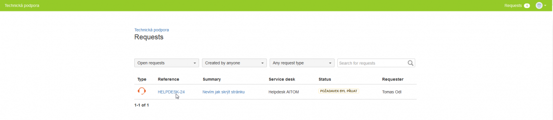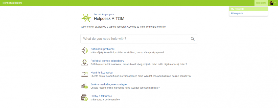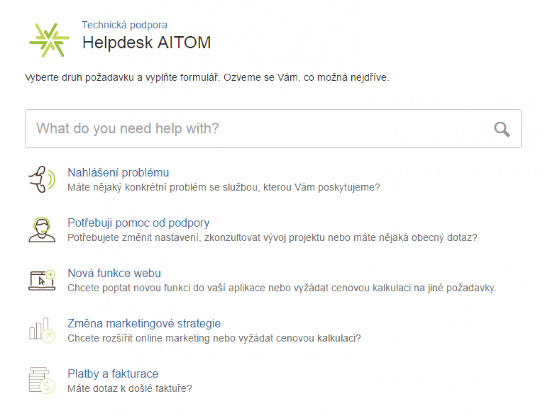 1. Helpdesk najdete na stránce helpdesk.aitom.cz, svůj požadavek můžete také zaslat e-mailem na helpdesk@aitom.cz