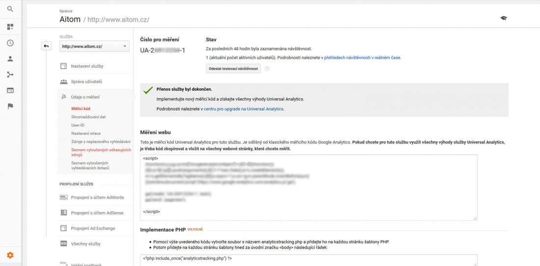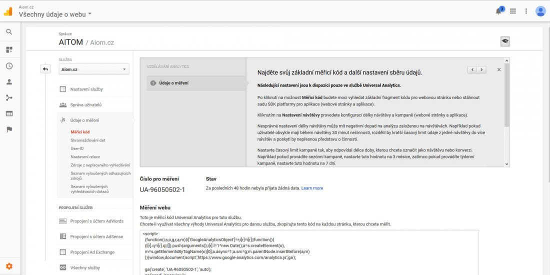 Měřící kód vám GA vygeneroval při vytvoření účtu.