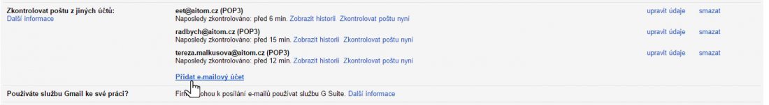 2. Sjeďte k poli "Zkontrolovat poštu z jiných účtů" a klikněte na "Přidat e-mailový účet"