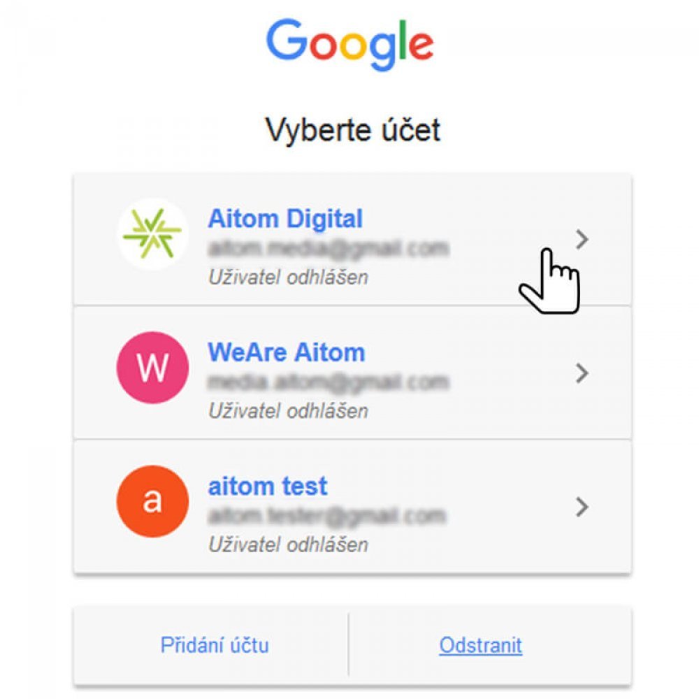 2. Pokud máte účet u Google vyberte si přihlašovací údaje, které pro GA budete používat. Případně si vytvořte si nový login. Návod, jak si vytvořit účet najdete zde, postup je intuitivní a jistě to hravě zvládnete.
